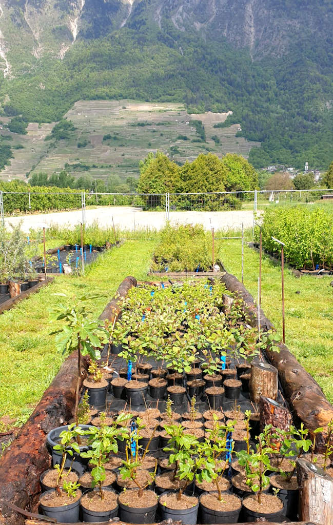 In het Franstalige kanton Valais (Wallis) in Zwitserland heb ik advies gegeven bij het inrichten van een tuin van een Nederlandse vriend. Hij is op mijn advies eerst ter plekke op zoek gegaan naar een lokale kwekerij van inheemse planten. Deze vond hij in het plaatsje Fully. De biologische kwekerij van Triage Forestier teelt inheemse bomen en struiken en zet zich in om de lokale biodiversiteit te bevorderen.