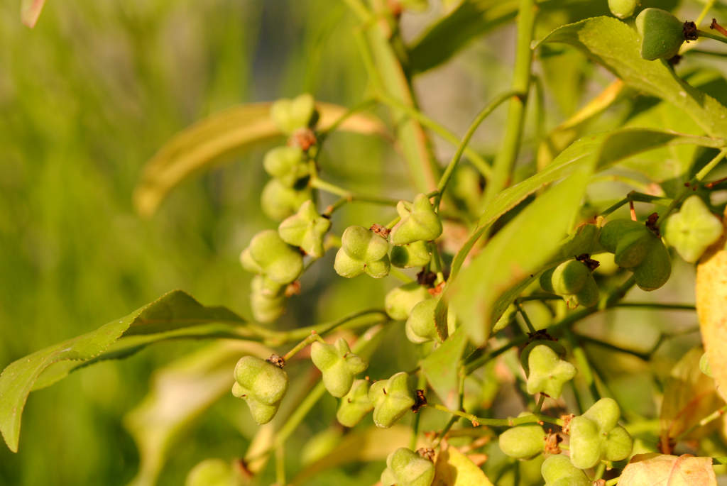 Krentenboompje (Amelanchier ovalis), ruwe berk (Betula pendula), gele kornoelje (Cornus mas), wilde kardinaalsmuts (Euonymus europaeus), struikpaardenhoefklaver (Hippocrepis emerus), jeneverbes (Juniperus communis), alpengoudenregen (Laburnum alpinum), wilde liguster (Ligustrum vulgare), kamperfoelie (Lonicera etrusca), alpenden (Pinus cembra), grove den (Pinus sylvestris) en de hondsroos (Rosa canina).
